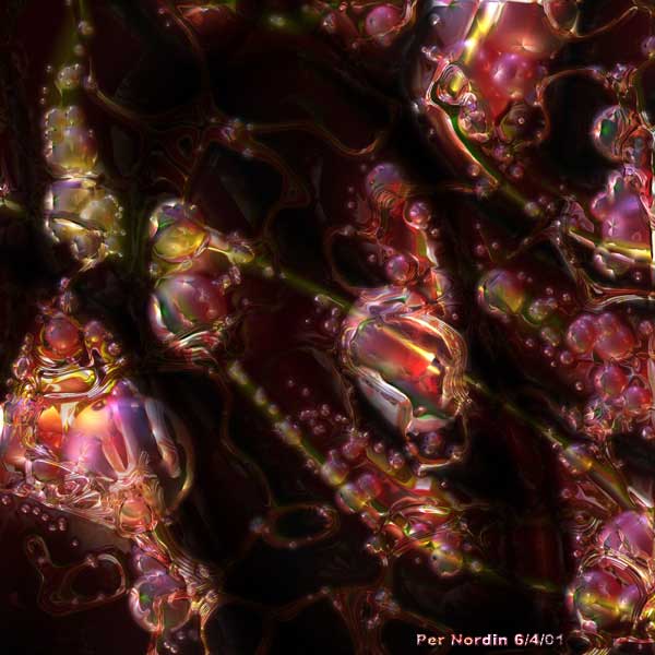 | Red Dew Variations This is the first "finalized" version, before I started going loose on the kaleidoscope.. Allready here the first visual impression of "red dew" is gone. Instead it looks like some semi-sureal romantic still-life of some organic jewels. |